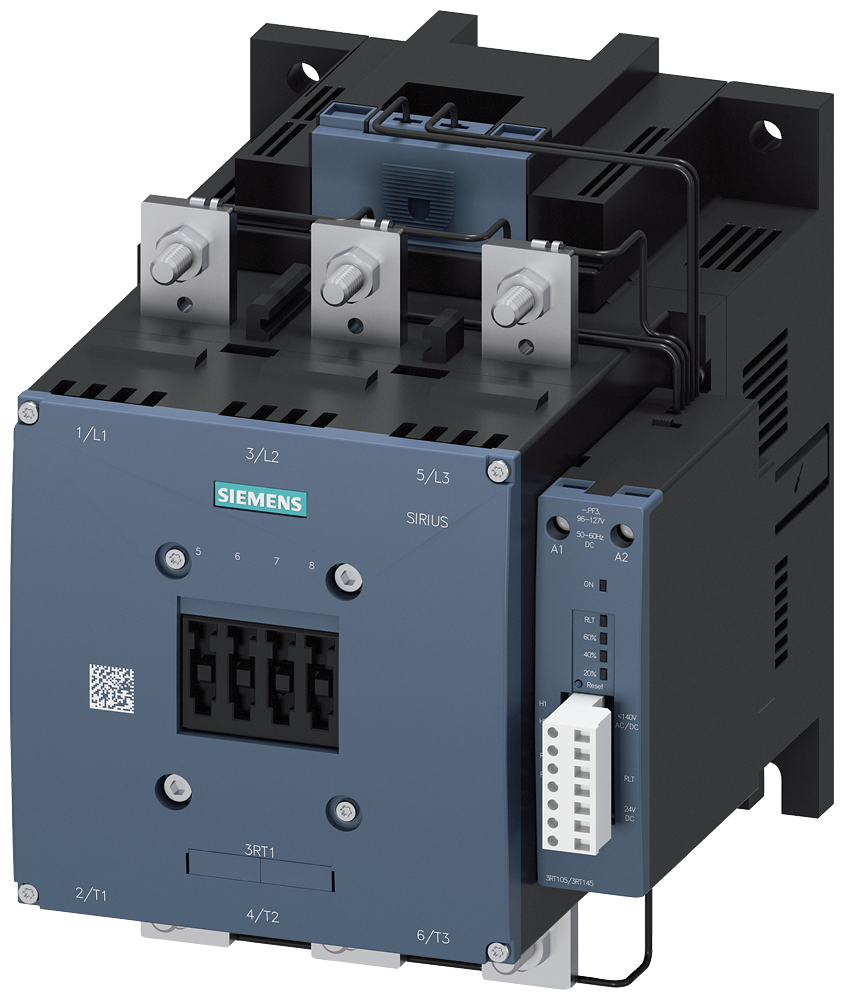 contactor de potencia, AC-3e/AC-3 400 A, 200 kW/400 V AC (50-60 Hz)/DC Uc: 200-277 V entrada PLC 24 V DC tripolar, contactos auxiliares 1 NA + 1 NC accionamiento: electrónico circuito ppal.: barra circuito de control y auxiliar: borne de tornillo con señalización de vida útil residual arco. Para el circuito auxiliar y de mando, también se suministran con bornes de resorte en toda la gama, lo que permite una conexión rápida, sin mantenimiento y a prueba de vibraciones.Para estos contactores se dispone de una amplia gama de accesorios como, p. ej., kits de montaje de cableado que simplifican este enormemente, contactos auxiliares o tapas cubrebornes.Fácil, eficiente, siempre actual, la gama modular SIRIUS.