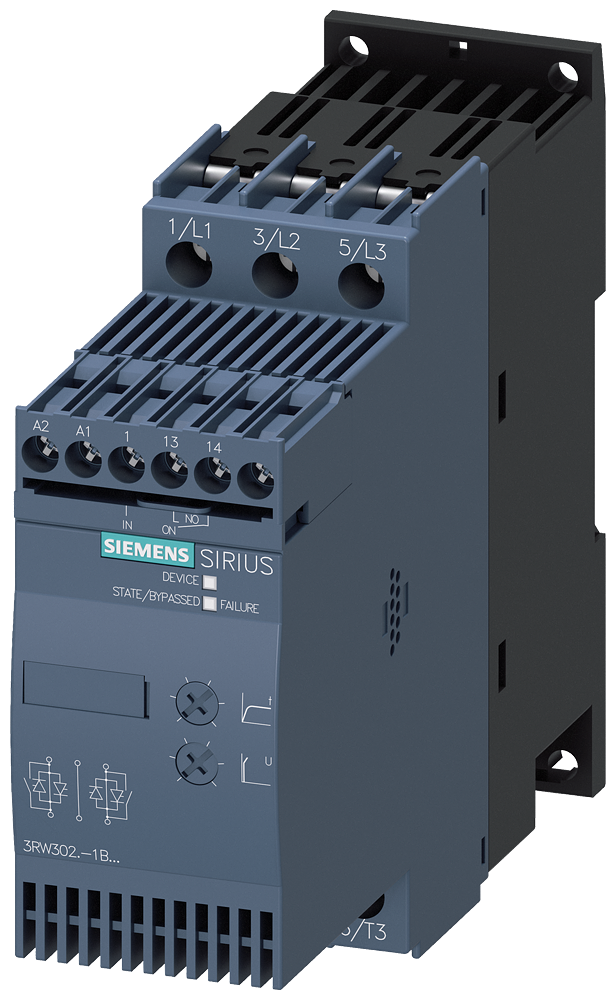 arrancador suave SIRIUS S0 32 A, 15 kW/400 V, 40 °C AC 200-480 V, AC/DC 24 V bornes de tornillo Arrancador suave SIRIUS 3RW30 para aplicaciones estándar de arranque suave de motores asíncronos trifásicos.Arranque suave, reducción de picos de intensidad, supresión de fluctuaciones de tensión de red en el arranque, descarga de la red de alimentación, disminución de la carga mecánica en el accionamiento, notable ahorro de espacio y de cableado en comparación con los arrancadores estrella-triángulo y los convertidores de frecuencia, maniobra sin mantenimiento y manejo muy sencillo. El bypass integrado hace posible un formato muy compacto y garantiza un menor calentamiento en el interior del armario. Homologaciones internacionales (p. ej., IEC y UL/CSA).Los arrancadores suaves 3RW para redes hasta 690 V están disponibles en un amplio rango de potencias con distintas tensiones de mando y con bornes de tornillo o de resorte en toda la gama. En el caso del 3RW30/40, hay variantes adicionales con tensión de mando de 24 V. Además, algunos de los 3RW40 (hasta el tamaño S3) y todos los 3RW44 ofrecen protección de motor por termistor.Con el bloque de conexión opcional los arrancadores suaves se pueden montar en los interruptores automáticos, incluso en las variantes con conexión por resorte.Fácil, eficiente, siempre actual, la gama modular SIRIUS.