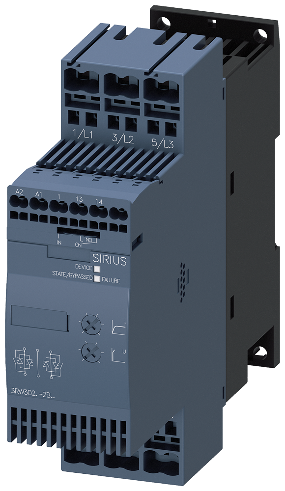 arrancador suave SIRIUS S0 38 A, 18,5 kW/400 V, 40 °C AC 200-480 V, AC/DC 24 V bornes de resorte Arrancador suave SIRIUS 3RW30 para aplicaciones estándar de arranque suave de motores asíncronos trifásicos.Arranque suave, reducción de picos de intensidad, supresión de fluctuaciones de tensión de red en el arranque, descarga de la red de alimentación, disminución de la carga mecánica en el accionamiento, notable ahorro de espacio y de cableado en comparación con los arrancadores estrella-triángulo y los convertidores de frecuencia, maniobra sin mantenimiento y manejo muy sencillo. El bypass integrado hace posible un formato muy compacto y garantiza un menor calentamiento en el interior del armario. Homologaciones internacionales (p. ej., IEC y UL/CSA).Los arrancadores suaves 3RW para redes hasta 690 V están disponibles en un amplio rango de potencias con distintas tensiones de mando y con bornes de tornillo o de resorte en toda la gama. En el caso del 3RW30/40, hay variantes adicionales con tensión de mando de 24 V. Además, algunos de los 3RW40 (hasta el tamaño S3) y todos los 3RW44 ofrecen protección de motor por termistor.Con el bloque de conexión opcional los arrancadores suaves se pueden montar en los interruptores automáticos, incluso en las variantes con conexión por resorte.Fácil, eficiente, siempre actual, la gama modular SIRIUS.