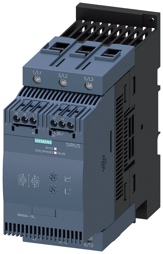 arrancador suave SIRIUS S3 80 A, 45 kW/400 V, 40 °C AC 200-480 V, AC/DC 110-230 V bornes de tornillo Arrancador suave SIRIUS 3RW30 para aplicaciones estándar de arranque suave de motores asíncronos trifásicos.Arranque suave, reducción de picos de intensidad, supresión de fluctuaciones de tensión de red en el arranque, descarga de la red de alimentación, disminución de la carga mecánica en el accionamiento, notable ahorro de espacio y de cableado en comparación con los arrancadores estrella-triángulo y los convertidores de frecuencia, maniobra sin mantenimiento y manejo muy sencillo. El bypass integrado hace posible un formato muy compacto y garantiza un menor calentamiento en el interior del armario. Homologaciones internacionales (p. ej., IEC y UL/CSA).Los arrancadores suaves 3RW para redes hasta 690 V están disponibles en un amplio rango de potencias con distintas tensiones de mando y con bornes de tornillo o de resorte en toda la gama. En el caso del 3RW30/40, hay variantes adicionales con tensión de mando de 24 V. Además, algunos de los 3RW40 (hasta el tamaño S3) y todos los 3RW44 ofrecen protección de motor por termistor.Con el bloque de conexión opcional los arrancadores suaves se pueden montar en los interruptores automáticos, incluso en las variantes con conexión por resorte.Fácil, eficiente, siempre actual, la gama modular SIRIUS.