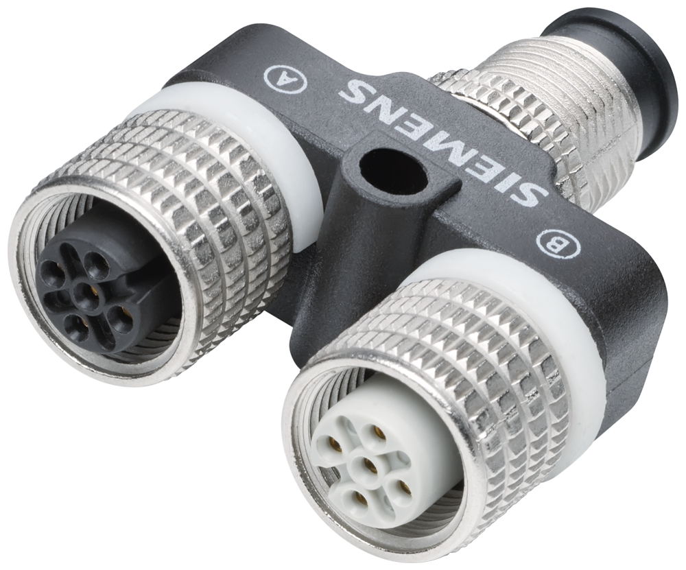 SIMATIC DP, pieza de conexión en Y para periferia descentralizada ET 200 para la conexión doble de E/S mediante cables independientes a ET 200 5 polos, M12 Accesorios para SIMATIC ET 200